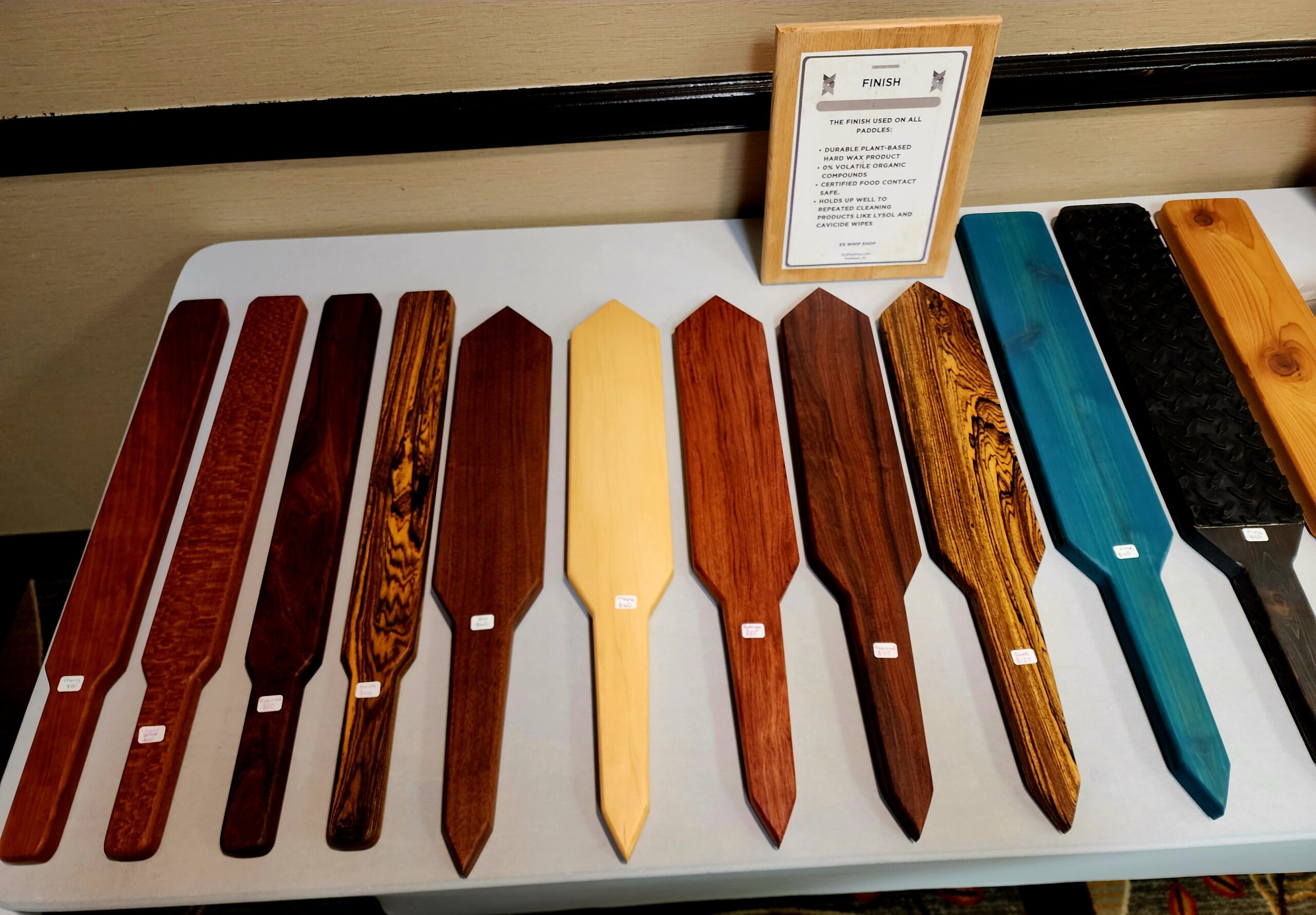 We carefully source premium hardwoods, exotic woods, and eco-conscious finishes to ensure that our paddles, canes, and accessories meet the highest standards. Our finishes on paddles are plant-based, non-toxic, and food-safe, ensuring not only a stunning aesthetic but also long-lasting durability.