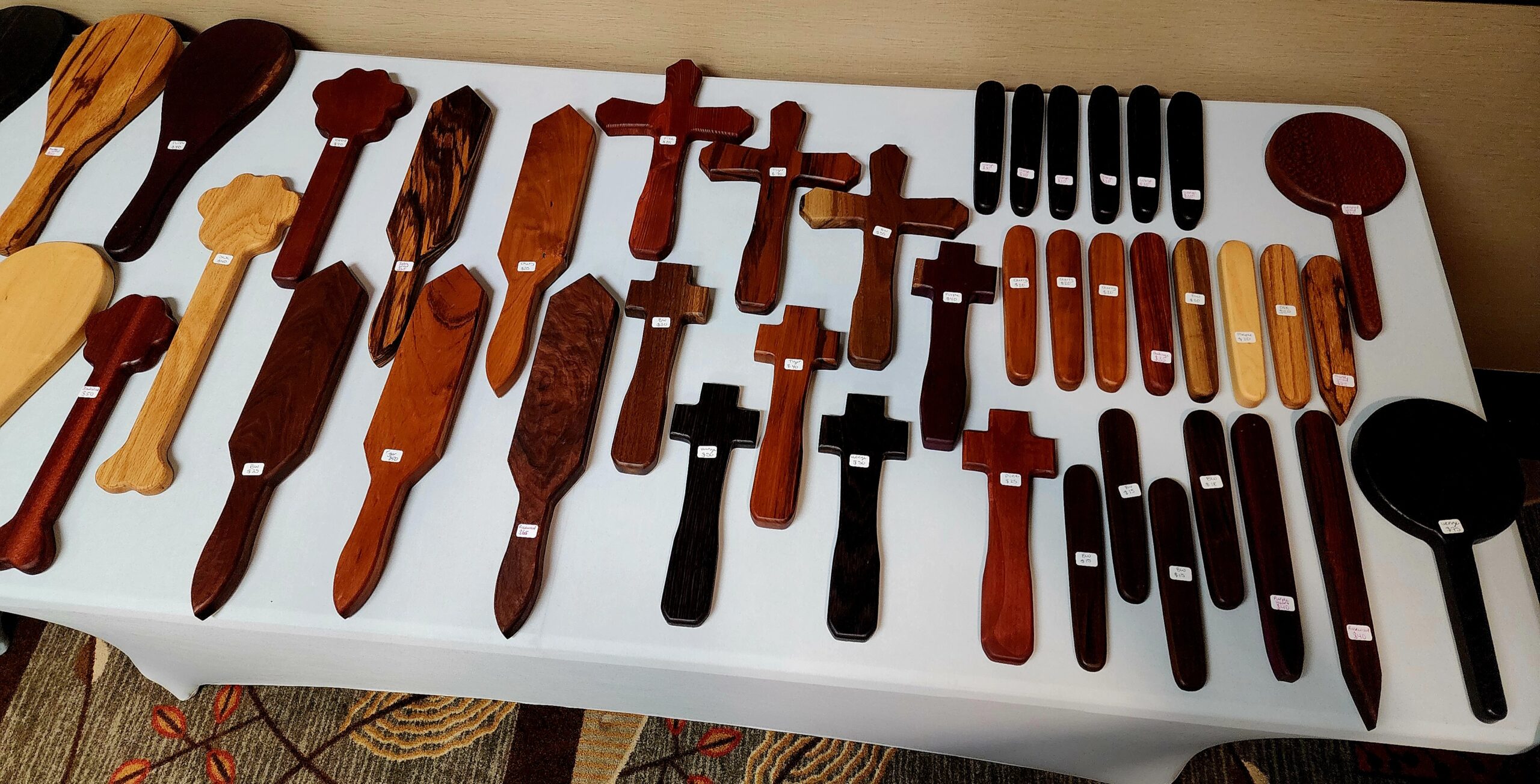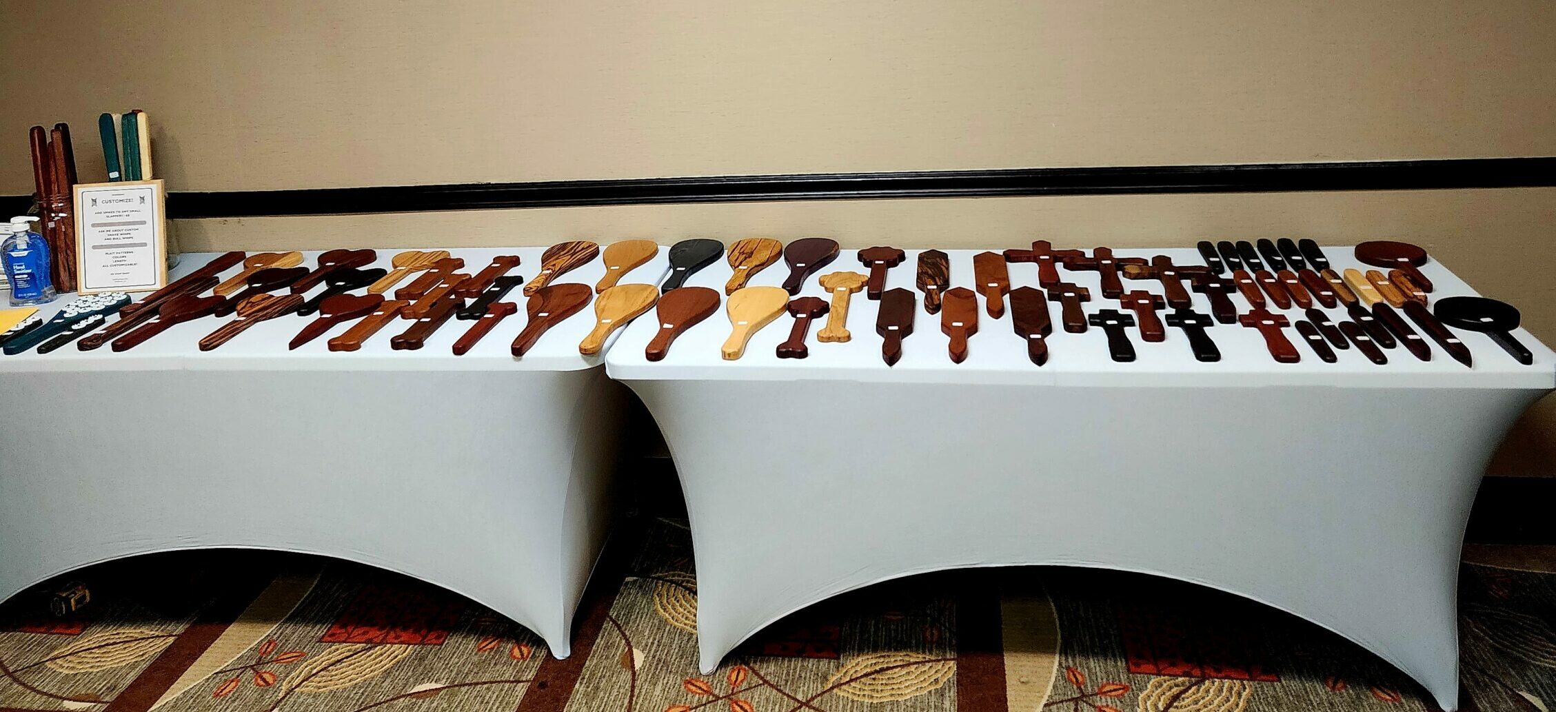 Canes were the next logical step. With my personal affinity for delivering a sharp, stinging impact, I found designing and crafting canes with custom wooden handles to be especially rewarding. As inspiration strikes, I continue to develop new designs—each one tested (thoroughly!) to ensure quality and performance.
